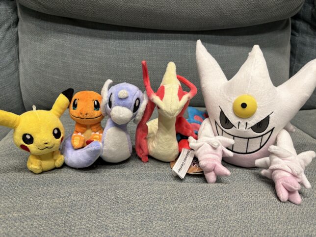他にもキーホルダーとかお土産のお菓子やマグネットなどいくつか買ってますが、写真は割愛します。ひとりひとつ制限のぬいぐるみもしっかりゲットしました!(僕がピカチュウ♂、娘がイーブイ♀)